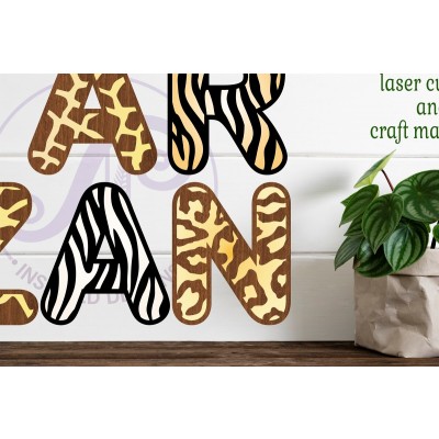 Σετ των 2 Intra απο ξύλο plywood 3mm-4mm πάχος – Wild Animal Print Γράμματα Alphabet X 78 Δίασταση 20x20 cm INTRAFABR-78170192