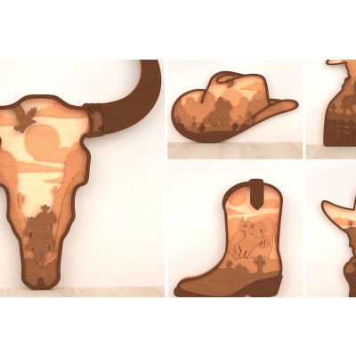 Όνομα Προϊόντος Σετ των 2 Intra απο ξύλο plywood 3mm-4mm πάχος – Πακέτο Wild West Cowboy Layered Δίασταση 20x20 cm INTRAFABR-119868332