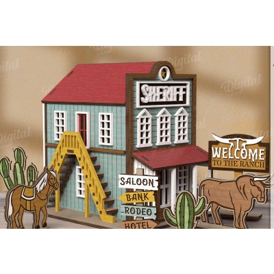 Όνομα Προϊόντος Σετ των 2 Intra απο ξύλο plywood 3mm-4mm πάχος – Περικοπή με λέιζερ Wild West Town Δίασταση 20x20 cm INTRAFABR-123620577