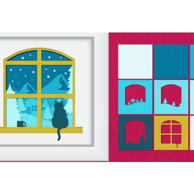 Όνομα Προϊόντος Σετ των 2 Intra απο ξύλο plywood 3mm-4mm πάχος – Χειμωνιάτικη γάτα σε χαρτί με στρώματα Windows Δίασταση 20x20 cm INTRAFABR-86075315