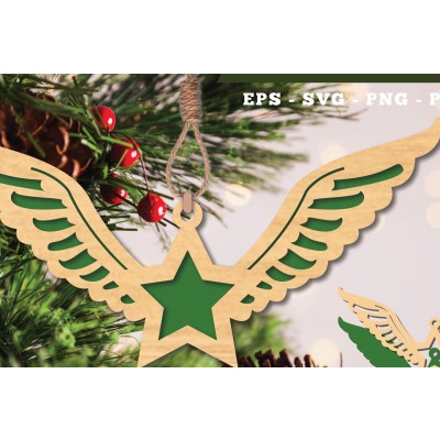 Σετ των 2 Intra απο ξύλο plywood 3mm-4mm πάχος – Στολίδι Wings Star 2 Δίασταση 20x20 cm INTRAFABR-112848096