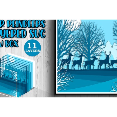 Όνομα Προϊόντος Σετ των 2 Intra απο ξύλο plywood 3mm-4mm πάχος – Τρισδιάστατο κουτί σκιών Winter Deer Layered Δίασταση 20x20 cm INTRAFABR-17286713
