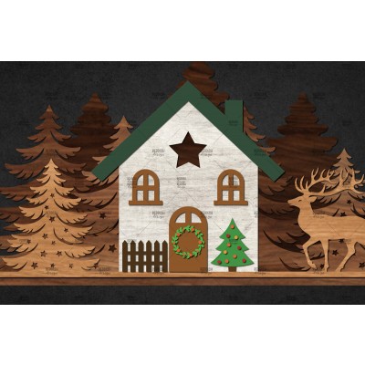 Όνομα Προϊόντος Σετ των 2 Intra απο ξύλο plywood 3mm-4mm πάχος – Winter House Scene Δίασταση 20x20 cm INTRAFABR-111136134