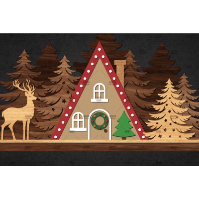 Σετ των 2 Intra απο ξύλο plywood 3mm-4mm πάχος – Σκηνή Winter Houses Δίασταση 20x20 cm INTRAFABR-111135786