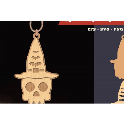Σετ των 2 Intra απο ξύλο plywood 3mm-4mm πάχος – Στολίδι Witch Skull Lasercut 2 Δίασταση 20x20 cm INTRAFABR-111489197
