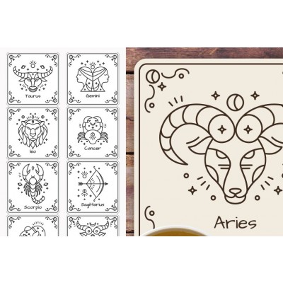 Όνομα Προϊόντος Σετ των 2 Intra απο ξύλο plywood 3mm-4mm πάχος – Σουβέρ Zodiac Χαρακτική με λέιζερ Δίασταση 20x20 cm INTRAFABR-122528134