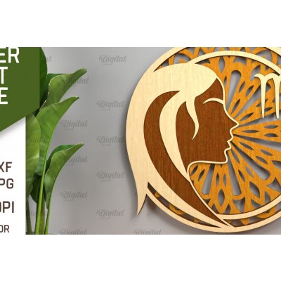 Σετ των 2 Intra απο ξύλο plywood 3mm-4mm πάχος – Αρχείο κοπής με λέιζερ ZODIAC. Ωροσκόπιο με στρώσεις Δίασταση 20x20 cm INTRAFABR-93642152