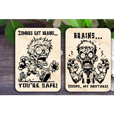 Σετ των 2 Intra απο ξύλο plywood 3mm-4mm πάχος – Zombie Eat Brains Cards Δίασταση 20x20 cm INTRAFABR-106494375