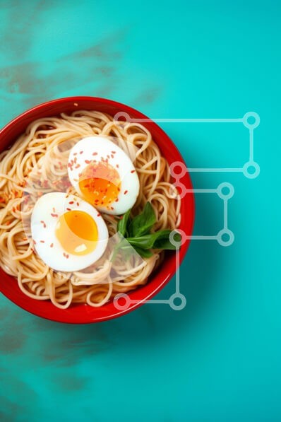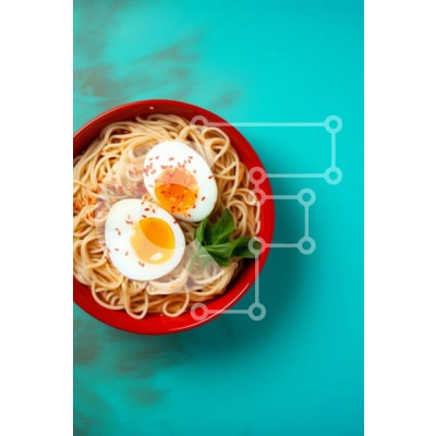 Υπάρχει δυνατότητα προσωποποίησης με δική σας φωτογραφία και προσαρμογής διαστάσεων κατόπιν παραγγελίας. Το συγεκεριμενο puzzle παρουσιαζει Η εικόνα δείχνει ένα μπολ με ζυμαρικά με δύο μισοβρασμένα αυγά, γαρνιρισμένα με νιφάδες κόκκινης πιπεριάς και φύλλα φρέσκου βασιλικού. Τα noodles μαγειρεύονται σε τέλεια υφή και το ζωηρό κόκκινο μπολ έρχεται σε όμορφη αντίθεση με το τιρκουάζ σκηνικό. Οι κίτρινοι κρόκοι των αυγ