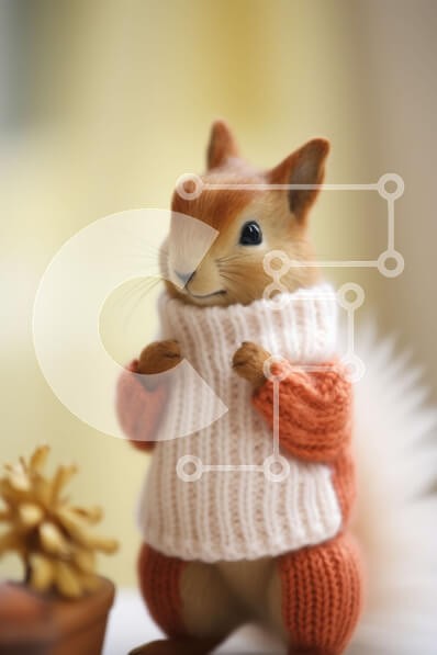 Υπάρχει δυνατότητα προσωποποίησης με δική σας φωτογραφία και προσαρμογής διαστάσεων κατόπιν παραγγελίας. Το συγεκεριμενο Puzzle 10x10 cm – 25 κομμ παρουσιαζει Αυτή η εικόνα παρουσιάζει έναν γοητευτικό σκίουρο ντυμένο με ένα άνετο πλεκτό πουλόβερ, με μια ζεστή έκφραση στο πρόσωπό του. Ο σκίουρος στέκεται σε κοντινή όψη, με τα πόδια του κρατημένα κοντά στο σώμα του, δείχνοντας τις περίπλοκες λεπτομέ