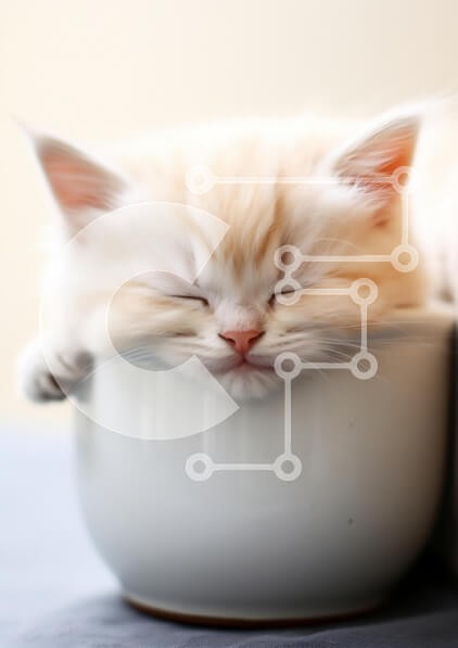 Υπάρχει δυνατότητα προσωποποίησης με δική σας φωτογραφία και προσαρμογής διαστάσεων κατόπιν παραγγελίας. Το συγεκεριμενο Puzzle 10x10 cm – 25 κομμ παρουσιαζει Αυτή η εικόνα παρουσιάζει μια γάτα που κοιμάται φωλιασμένη άνετα σε ένα λευκό μπολ. Η γάτα έχει απαλή, χνουδωτή γούνα με ανοιχτό χρώμα και τα μάτια της είναι κλειστά, υποδηλώνοντας έναν ήρεμο ύπνο. Το φόντο είναι απαλά θολό, εστιάζοντας την