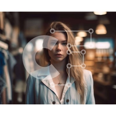 | Όνομα Προϊόντος | Σετ των 2 Intra Συλλεκτικό Ξύλινο Παζλ Plywood 4mm - Μοντέρνα γυναίκα με λευκό πουκάμισο και μπλε μπουφάν που στέκεται στο κατάστημα ρούχων Σε Ξύλινο Κουτί - Διαστάσεις: 10x10 cm – 25 κομμάτια |