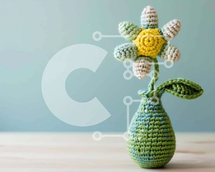 Περιγραφή εικόνας & κατασκευής: Το Puzzle 10x10 cm – 25 κομμπαρουσιάζει μια υψηλής ευκρίνειας εικόνα με εξαιρετική λεπτομέρεια και ζωντανά χρώματα. Κατασκευάζεται από ανθεκτικό φυσικό ξύλο, με κομμάτια κομμένα με laser για τέλειο ταίριασμα. Η ξυλεία είναι προσεγμένη και άριστης ποιότητας, ενώ η εκτύπωση ολοκληρώνεται με γυαλιστερή υφή και προστατευτικό βερνίκι. Παραλαβή: Το προϊόν παραδίδεται σε στιβαρό ξύλινο κουτί σε χρώμα wenge, έτοιμο για χρήση ή ως δώρο. Η παραγγελία αποστέλλεται απευθείας από την παραγωγή στον καταναλωτή, εξασφαλίζοντας φρεσκάδα, ποιότητα και άμεση διαθεσιμότητα. Υπάρχει δυνατότητα προσωποποίησης με δική σας φωτογραφία και προσαρμογής διαστάσεων κατόπιν παραγγελίας. Το συγεκεριμενο Puzzle 10x10 cm – 25 κομμ παρουσιαζει Η εικόνα παρουσιάζει ένα μικρό, κροσέ λουλούδι σε ένα άδειο βάζο. Τοποθετείται στην κορυφή του τραπεζιού και φαίνεται από πολλές γωνίες. Υπάρχουν πολλά φύλλα που συνδέονται με το λουλούδι, υποδηλώνοντας ότι μπορεί να έχει φτιαχτεί στο χέρι.