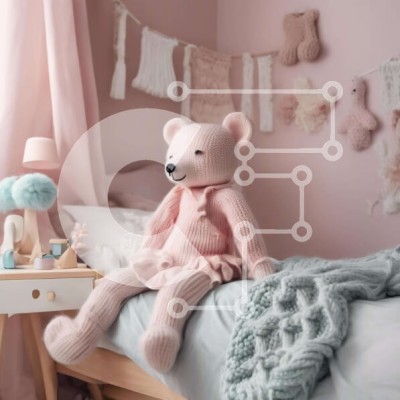 Υπάρχει δυνατότητα προσωποποίησης με δική σας φωτογραφία και προσαρμογής διαστάσεων κατόπιν παραγγελίας. Το συγεκεριμενο Puzzle 10x10 cm – 25 κομμ παρουσιαζει Η εικόνα δείχνει ένα χαριτωμένο ροζ αρκουδάκι που στηρίζεται στο κρεβάτι, στολισμένο με ροζ και λευκό ντεκόρ. Διάφορα αξεσουάρ κρεβατοκάμαρας όπως μαξιλάρια, κουβέρτες και φωτιστικά είναι ορατά, προσφέροντας έμπνευση για τη διακόσμηση του δω