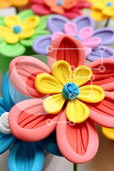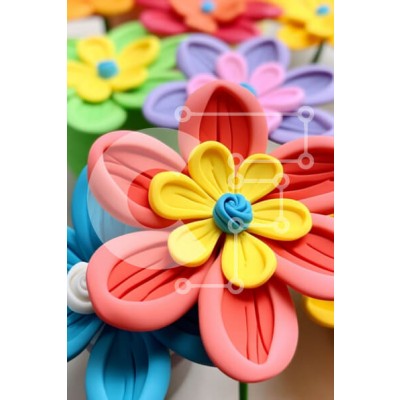 Υπάρχει δυνατότητα προσωποποίησης με δική σας φωτογραφία και προσαρμογής διαστάσεων κατόπιν παραγγελίας. Το συγεκεριμενο puzzle παρουσιαζει Αυτή η εικόνα παρουσιάζει μια ομάδα από πολύχρωμα λουλούδια τοποθετημένα σε κύκλο. Κάθε λουλούδι έχει μοναδικό χρώμα και σχήμα, με άλλα να έχουν πέταλα και άλλα φύλλα. Τα λουλούδια είναι κατασκευασμένα από μαλακό, εύκαμπτο υλικό, πιθανώς πηλό ή πλαστελίνη. Είναι διατεταγμένα σ