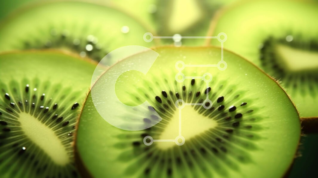 Όνομα Προϊόντος Σετ των 2 Intra Συλλεκτικό Ξύλινο Παζλ Plywood 4mm - Κοντινό πλάνο φέτες φρούτων ακτινιδίων σε πράσινο φόντο Σε Ξύλινο Κουτί - Διαστάσεις: 10x10 cm – 25 κομμάτια