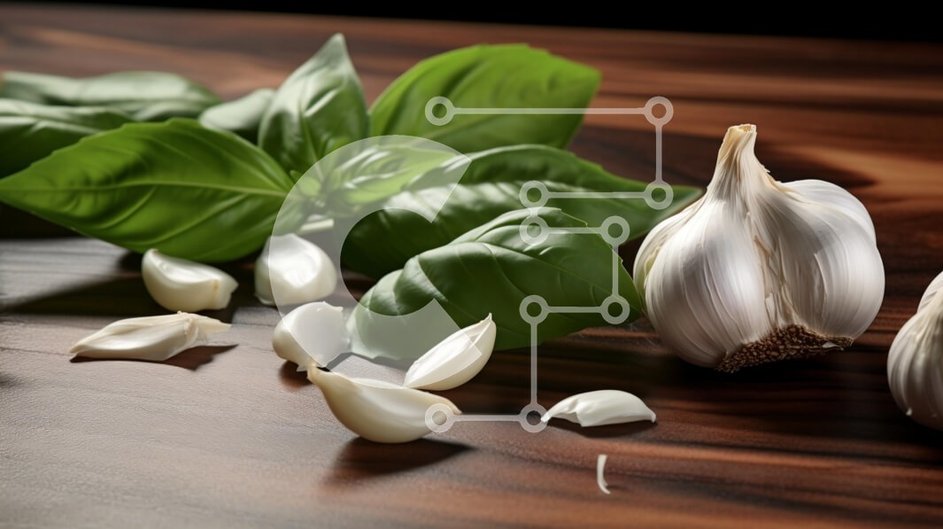 Υπάρχει δυνατότητα προσωποποίησης με δική σας φωτογραφία και προσαρμογής διαστάσεων κατόπιν παραγγελίας. Το συγεκεριμενο puzzle παρουσιαζει Η εικόνα δείχνει ένα ξύλινο τραπέζι στολισμένο με σκόρδο, βασιλικό και σκελίδες. Το σκόρδο τοποθετείται στο κέντρο, με βασιλικό και σκελίδες τοποθετημένες στα πλάγια. Γύρω από το σκόρδο υπάρχουν πράσινα φύλλα, προσθέτοντας μια φρέσκια πινελιά στη σύνθεση. Ένα μοναδικό puzzle