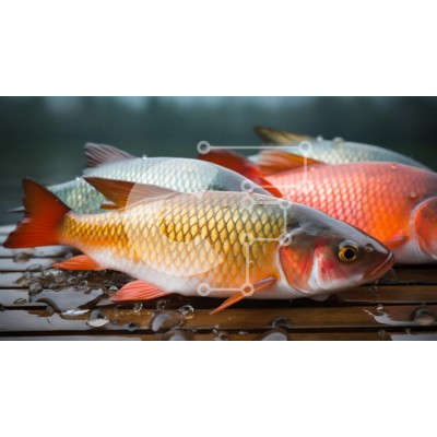 Υπάρχει δυνατότητα προσωποποίησης με δική σας φωτογραφία και προσαρμογής διαστάσεων κατόπιν παραγγελίας. Το συγεκεριμενο Puzzle 10x10 cm – 25 κομμ παρουσιαζει Αυτή η εικόνα παρουσιάζει πολλά ψάρια να στηρίζονται σε μια ξύλινη επιφάνεια με σταγονίδια νερού στα λέπια τους. Τα ψάρια εμφανίζουν μια σειρά από ζωντανά χρώματα, συμπεριλαμβανομένων των αποχρώσεων του πορτοκαλί, του κόκκινου και του μπλε,