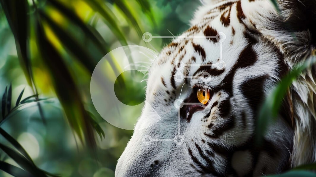 Υπάρχει δυνατότητα προσωποποίησης με δική σας φωτογραφία και προσαρμογής διαστάσεων κατόπιν παραγγελίας. Το συγεκεριμενο Puzzle 10x10 cm – 25 κομμ παρουσιαζει Αυτή η εικόνα παρουσιάζει μια λευκή τίγρη σε ένα δάσος, εν μέρει κρυμμένη πίσω από καταπράσινα φύλλα. Τα μάτια της τίγρης έχουν ένα εντυπωσιακό πορτοκαλί χρώμα, δημιουργώντας μια αίσθηση εστίασης και έντασης. Μπορεί να αναζητά καταφύγιο ή να