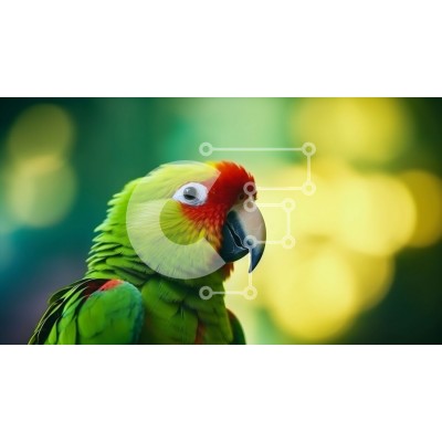 Υπάρχει δυνατότητα προσωποποίησης με δική σας φωτογραφία και προσαρμογής διαστάσεων κατόπιν παραγγελίας. Το συγεκεριμενο Puzzle 10x10 cm – 25 κομμ παρουσιαζει Αυτή η εικόνα παρουσιάζει έναν ζωντανό πράσινο και κόκκινο παπαγάλο που στέκεται μπροστά από ένα θολό φόντο. Ο παπαγάλος έχει το κεφάλι του γερμένο στο πλάι, κοιτάζοντας πιθανώς την κάμερα. Αυτό το είδος πουλιών βρίσκεται στην Αφρική, την Ασ