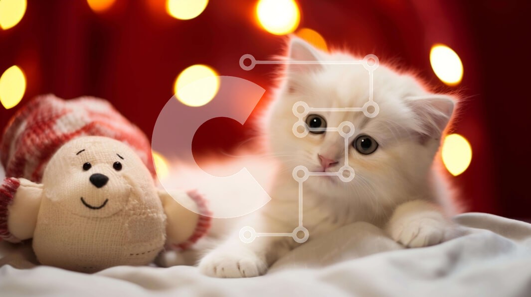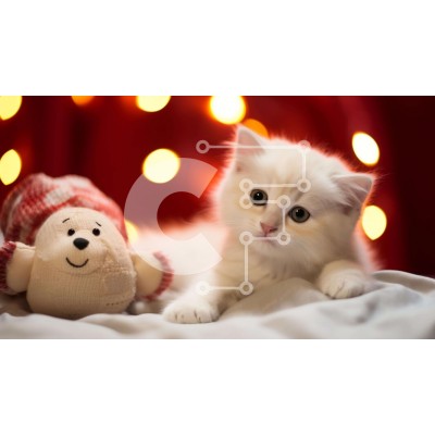 Υπάρχει δυνατότητα προσωποποίησης με δική σας φωτογραφία και προσαρμογής διαστάσεων κατόπιν παραγγελίας. Το συγεκεριμενο Puzzle 10x10 cm – 25 κομμ παρουσιαζει Αυτή η εικόνα είναι ένα χαριτωμένο λευκό γατάκι που παίζει με ένα πορτοκαλί αρκουδάκι. Το γατάκι φαίνεται να απολαμβάνει τον χρόνο του στο κρεβάτι καθώς αλληλεπιδρά με το λούτρινο ζώο. Γύρω από τη σκηνή είναι κόκκινα και πράσινα φώτα, δημιου