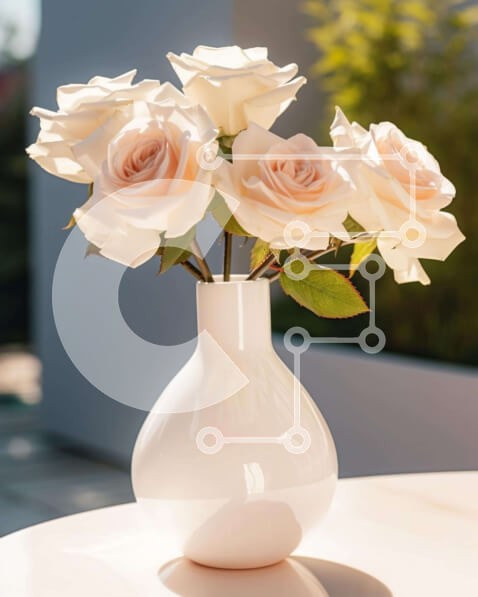 Υπάρχει δυνατότητα προσωποποίησης με δική σας φωτογραφία και προσαρμογής διαστάσεων κατόπιν παραγγελίας. Το συγεκεριμενο puzzle παρουσιαζει Η εικόνα παρουσιάζει ένα λευκό βάζο γεμάτο με πέντε ροζ τριαντάφυλλα, τα οποία είναι τοποθετημένα στη μέση του τραπεζιού. Φαίνονται να είναι φρεσκοκομμένα και έχουν τοποθετηθεί εκεί εδώ και αρκετό καιρό. Υπάρχει επίσης ένα εξωτερικό σκηνικό ορατό σε αυτήν την εικόνα, που υποδη