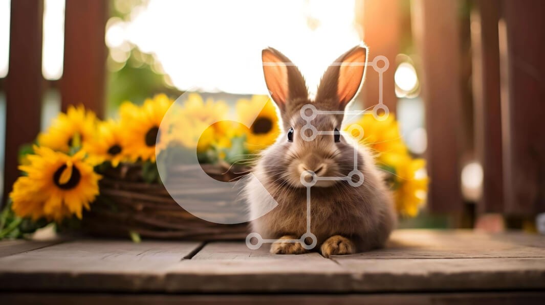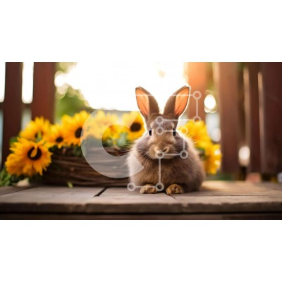 Υπάρχει δυνατότητα προσωποποίησης με δική σας φωτογραφία και προσαρμογής διαστάσεων κατόπιν παραγγελίας. Το συγεκεριμενο Puzzle 10x10 cm – 25 κομμ παρουσιαζει Η εικόνα παρουσιάζει ένα καφέ κουνελάκι που κάθεται σε ένα ξύλινο κατάστρωμα με ηλίανθους μπροστά του. Το κουνέλι φαίνεται να είναι χαλαρό και άνετο, πιθανότατα λόγω του ότι είναι καλά περιποιημένο και εμβολιασμένο κατά ορισμένων ασθενειών ή