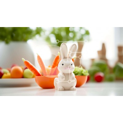 Υπάρχει δυνατότητα προσωποποίησης με δική σας φωτογραφία και προσαρμογής διαστάσεων κατόπιν παραγγελίας. Το συγεκεριμενο Puzzle 10x10 cm – 25 κομμ παρουσιαζει Αυτή η εικόνα παρουσιάζει ένα λευκό ειδώλιο κουνελιού που περιβάλλεται από πολλά μπολ με φρέσκα λαχανικά, όπως καρότα, μπρόκολο και κουνουπίδι. Ένα άδειο μπολ τοποθετείται δίπλα στο ειδώλιο του κουνελιού, υποδηλώνοντας ότι θα μπορούσε να χρη