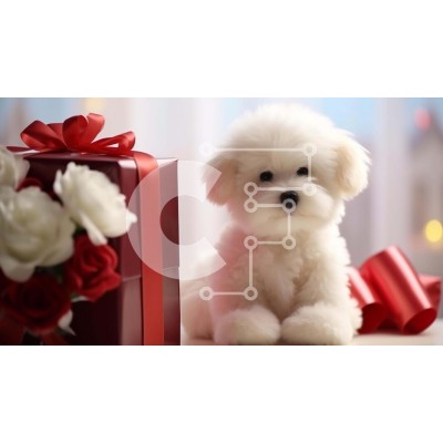 Υπάρχει δυνατότητα προσωποποίησης με δική σας φωτογραφία και προσαρμογής διαστάσεων κατόπιν παραγγελίας. Το συγεκεριμενο Puzzle 10x10 cm – 25 κομμ παρουσιαζει Αυτή η εικόνα παρουσιάζει ένα μικρό λευκό σκυλί που κάθεται δίπλα σε ένα ανοιχτό κουτί δώρου με κόκκινες κορδέλες και λουλούδια. Το κουτάβι βρίσκεται πολύ κοντά στο παρόν, δημιουργώντας την εντύπωση ότι περιμένει με ανυπομονησία να λάβει το