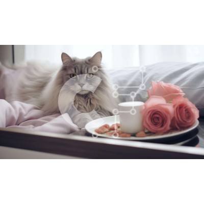 Υπάρχει δυνατότητα προσωποποίησης με δική σας φωτογραφία και προσαρμογής διαστάσεων κατόπιν παραγγελίας. Το συγεκεριμενο Puzzle 10x10 cm – 25 κομμ παρουσιαζει Η εικόνα δείχνει μια γκρίζα γάτα ξαπλωμένη στο κρεβάτι με τριαντάφυλλα στη γούνα της. Ένα πιάτο με φαγητό τοποθετείται δίπλα στη γάτα, η οποία φαίνεται να απολαμβάνει το γεύμα της. Υπάρχουν επίσης πολλά λουλούδια διάσπαρτα στο δωμάτιο, υποδη