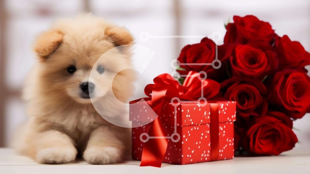 Υπάρχει δυνατότητα προσωποποίησης με δική σας φωτογραφία και προσαρμογής διαστάσεων κατόπιν παραγγελίας. Το συγεκεριμενο Puzzle 10x10 cm – 25 κομμ παρουσιαζει Η εικόνα δείχνει ένα μικρό κουτάβι που κάθεται δίπλα σε μια διάταξη από κόκκινα τριαντάφυλλα. Το κουτάβι φαίνεται να απολαμβάνει την παρουσία του δώρου, το οποίο είναι τυλιγμένο σε κόκκινο χαρτί περιτυλίγματος. Μπορεί επίσης να παίζει με τον