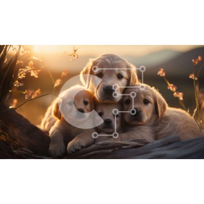 Υπάρχει δυνατότητα προσωποποίησης με δική σας φωτογραφία και προσαρμογής διαστάσεων κατόπιν παραγγελίας. Το συγεκεριμενο Puzzle 10x10 cm – 25 κομμ παρουσιαζει Αυτή η εικόνα δείχνει μια ομάδα τριών κουταβιών Γκόλντεν Ριτρίβερ μαζεμένα σε ένα κούτσουρο σε ένα φυσικό σκηνικό το ηλιοβασίλεμα. Ο φωτισμός είναι ζεστός και χρυσός, δημιουργώντας μια ζεστή και φιλόξενη αίσθηση. Τα κουτάβια έχουν χνουδωτή γ