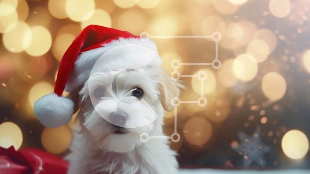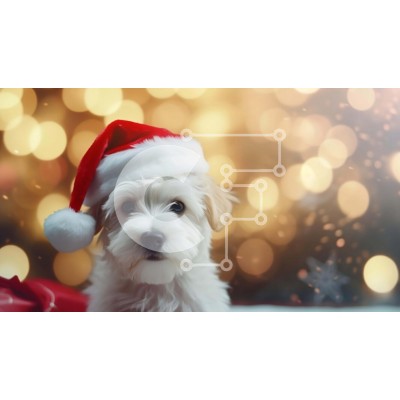 Υπάρχει δυνατότητα προσωποποίησης με δική σας φωτογραφία και προσαρμογής διαστάσεων κατόπιν παραγγελίας. Το συγεκεριμενο Puzzle 10x10 cm – 25 κομμ παρουσιαζει Αυτή η εικόνα απεικονίζει ένα μικρό λευκό σκυλί που φορά ένα πορτοκαλί και λευκό καπέλο Άγιου Βασίλη. Ο σκύλος κάθεται στο προσκήνιο, στραμμένος προς την κάμερα. Υπάρχουν πολλά φώτα που περιβάλλουν τον σκύλο, δημιουργώντας μια εορταστική ατμ
