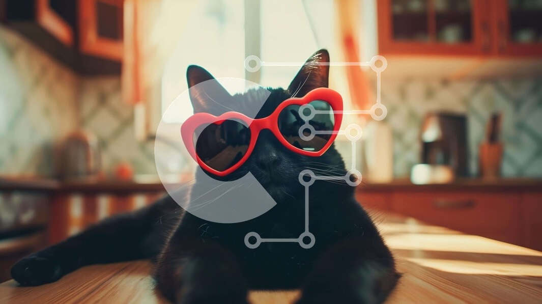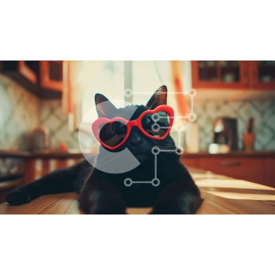 Υπάρχει δυνατότητα προσωποποίησης με δική σας φωτογραφία και προσαρμογής διαστάσεων κατόπιν παραγγελίας. Το συγεκεριμενο Puzzle 10x10 cm – 25 κομμ παρουσιαζει Η εικόνα δείχνει μια κομψή μαύρη γάτα που φοράει κόκκινα γυαλιά ηλίου σε σχήμα καρδιάς. Η γάτα χαλαρώνει σε ένα τραπέζι, αποπνέοντας έναν αέρα δροσιάς και γοητείας. Διάφορα αντικείμενα κουζίνας, όπως κατσαρόλες, τηγάνια, φλιτζάνια και πιάτα,