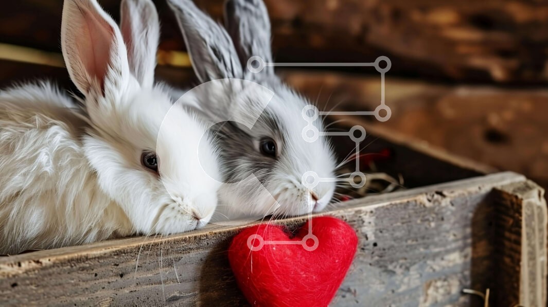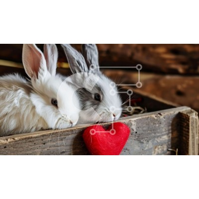 Υπάρχει δυνατότητα προσωποποίησης με δική σας φωτογραφία και προσαρμογής διαστάσεων κατόπιν παραγγελίας. Το συγεκεριμενο Puzzle 10x10 cm – 25 κομμ παρουσιαζει Αυτή η εικόνα παρουσιάζει δύο λευκά κουνέλια σε ένα ξύλινο κουτί, με το ένα από αυτά να ακουμπάει πάνω σε ένα παιχνίδι σε σχήμα καρδιάς. Το σκηνικό μπορεί να σχετίζεται με την Ημέρα του Αγίου Βαλεντίνου ή με ένα καταφύγιο ζώων ή κέντρο διάσω