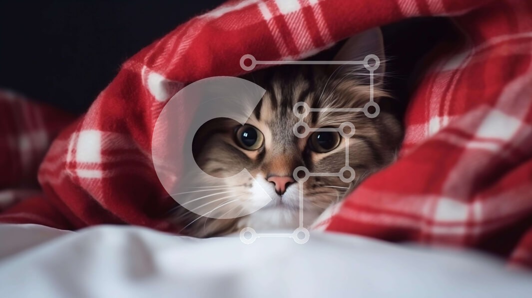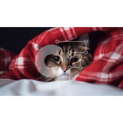 Υπάρχει δυνατότητα προσωποποίησης με δική σας φωτογραφία και προσαρμογής διαστάσεων κατόπιν παραγγελίας. Το συγεκεριμενο Puzzle 10x10 cm – 25 κομμ παρουσιαζει Αυτή η εικόνα δείχνει μια περίεργη γάτα να κρυφοκοιτάει από κάτω από μια κόκκινη και άσπρη καρό κουβέρτα. Η γάτα είναι ξαπλωμένη πάνω σε ένα κρεβάτι, κοιτάζοντας ψηλά την κάμερα με το κεφάλι γερμένο στο πλάι. Η έκφρασή του υποδηλώνει είτε πε