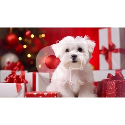 Υπάρχει δυνατότητα προσωποποίησης με δική σας φωτογραφία και προσαρμογής διαστάσεων κατόπιν παραγγελίας. Το συγεκεριμενο Puzzle 10x10 cm – 25 κομμ παρουσιαζει Αυτή η εικόνα παρουσιάζει ένα μικρό λευκό σκυλί που κάθεται μπροστά από πολλά κόκκινα και λευκά κουτιά δώρων. Ο σκύλος κοιτάζει την κάμερα, δείχνοντας την περιέργεια και τη στοργή του. Τα δώρα είναι όμορφα τυλιγμένα με κόκκινες κορδέλες και