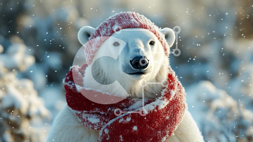Υπάρχει δυνατότητα προσωποποίησης με δική σας φωτογραφία και προσαρμογής διαστάσεων κατόπιν παραγγελίας. Το συγεκεριμενο Puzzle 10x10 cm – 25 κομμ παρουσιαζει Η εικόνα απεικονίζει μια πολική αρκούδα που φορά ένα κόκκινο πλεκτό καπέλο και ένα ασορτί φουλάρι, που περιβάλλεται από ένα χιονισμένο τοπίο. Γύρω του πέφτουν απαλά νιφάδες χιονιού, ενισχύοντας τη χειμωνιάτικη ατμόσφαιρα. Η γούνα της αρκούδα