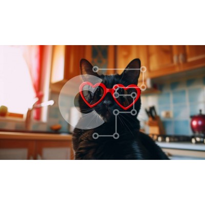 Υπάρχει δυνατότητα προσωποποίησης με δική σας φωτογραφία και προσαρμογής διαστάσεων κατόπιν παραγγελίας. Το συγεκεριμενο Puzzle 10x10 cm – 25 κομμ παρουσιαζει Αυτή η εικόνα παρουσιάζει μια παιχνιδιάρικη μαύρη γάτα που φοράει κόκκινα γυαλιά ηλίου σε σχήμα καρδιάς. Η γάτα είναι σκαρφαλωμένη στον πάγκο της κουζίνας, περιτριγυρισμένη από μαχαίρια, κατσαρόλες, τηγάνια και σκεύη, δημιουργώντας μια ζεστή