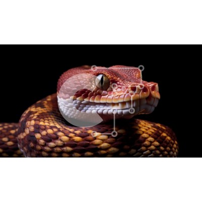 Υπάρχει δυνατότητα προσωποποίησης με δική σας φωτογραφία και προσαρμογής διαστάσεων κατόπιν παραγγελίας. Το συγεκεριμενο Puzzle 10x10 cm – 25 κομμ παρουσιαζει Αυτή η φωτογραφία παρουσιάζει ένα κοντινό πλάνο του κεφαλιού ενός φιδιού. Το φίδι έχει ένα κόκκινο και κίτρινο σχέδιο στο σώμα του και τα λαμπερά κίτρινα μάτια του κοιτούν απευθείας την κάμερα. Το στόμα του είναι ανοιχτό, δείχνοντας τα κοφτε