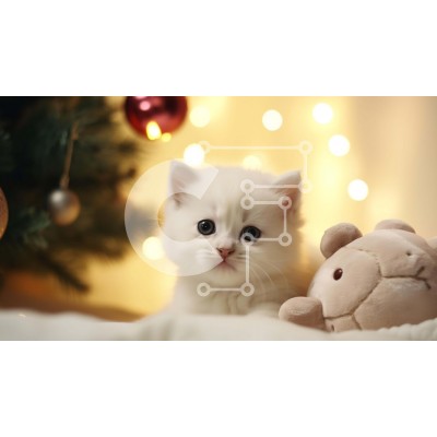 Υπάρχει δυνατότητα προσωποποίησης με δική σας φωτογραφία και προσαρμογής διαστάσεων κατόπιν παραγγελίας. Το συγεκεριμενο Puzzle 10x10 cm – 25 κομμ παρουσιαζει Αυτή η εικόνα παρουσιάζει ένα λευκό γατάκι ξαπλωμένο πάνω από ένα διακοσμημένο χριστουγεννιάτικο δέντρο. Το γατάκι κοιτάζει την κάμερα με ορθάνοιχτα μάτια. Υπάρχει επίσης ένα αρκουδάκι παρόν στη σκηνή, προσθέτοντας στη χαριτωμένη και παιχνιδ