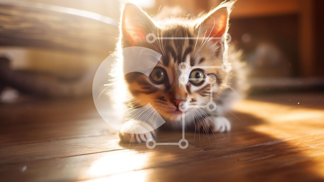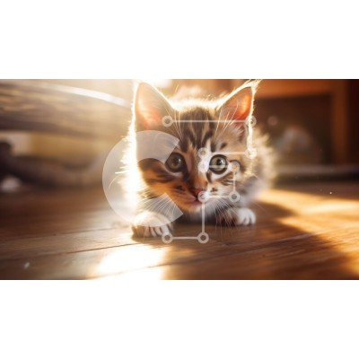 Υπάρχει δυνατότητα προσωποποίησης με δική σας φωτογραφία και προσαρμογής διαστάσεων κατόπιν παραγγελίας. Το συγεκεριμενο Puzzle 10x10 cm – 25 κομμ παρουσιαζει Αυτή η εικόνα παρουσιάζει ένα μικρό γατάκι με ανοιχτό καφέ και λευκό ριγέ γούνα ξαπλωμένο σε ένα ξύλινο πάτωμα. Το γατάκι κοιτάζει την κάμερα με μεγάλα, περίεργα μάτια. Ο φωτισμός στην εικόνα είναι ζεστός και απαλός, δημιουργώντας μια ζεστή