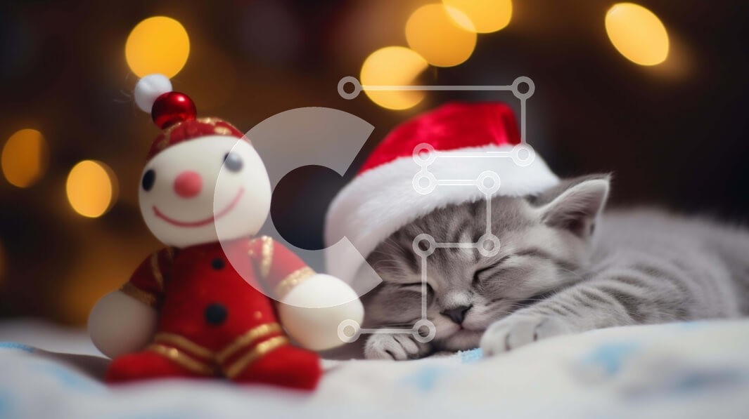 Υπάρχει δυνατότητα προσωποποίησης με δική σας φωτογραφία και προσαρμογής διαστάσεων κατόπιν παραγγελίας. Το συγεκεριμενο Puzzle 10x10 cm – 25 κομμ παρουσιαζει Αυτή η εικόνα δείχνει ένα χαριτωμένο γκρι γατάκι ντυμένο για την περίοδο των γιορτών. Κοιμάται ήσυχα πάνω σε μια διακοσμημένη κούκλα-παιχνίδι. Το φόντο διαθέτει φώτα που αναβοσβήνουν, δημιουργώντας μια ζεστή και εορταστική ατμόσφαιρα. Ένα μ