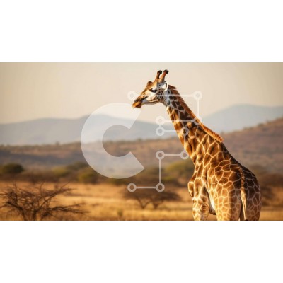 Υπάρχει δυνατότητα προσωποποίησης με δική σας φωτογραφία και προσαρμογής διαστάσεων κατόπιν παραγγελίας. Το συγεκεριμενο Puzzle 10x10 cm – 25 κομμ παρουσιαζει Αυτή η εικόνα δείχνει μια καμηλοπάρδαλη να στέκεται στις χορταριασμένες πεδιάδες, με βουνά και λόφους να παρέχουν ένα γραφικό φόντο. Η καμηλοπάρδαλη συλλαμβάνεται σε μια στιγμή βόσκησης ή ανάπαυσης, όπως φαίνεται από τον μακρύ λαιμό της που