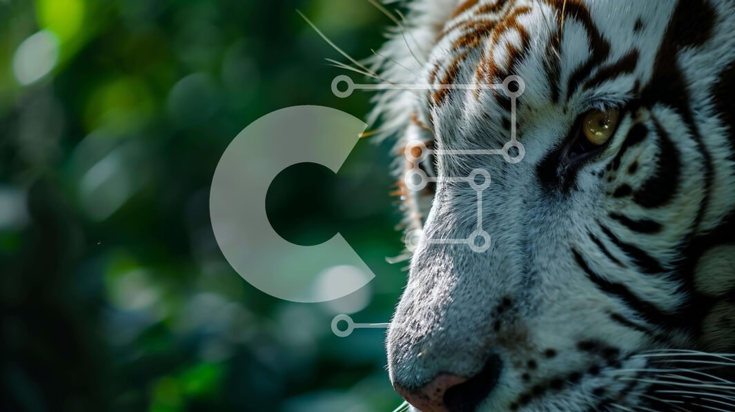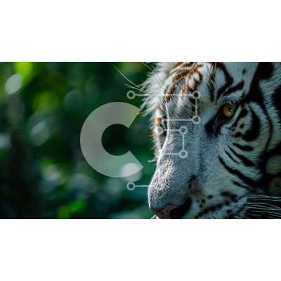 Υπάρχει δυνατότητα προσωποποίησης με δική σας φωτογραφία και προσαρμογής διαστάσεων κατόπιν παραγγελίας. Το συγεκεριμενο Puzzle 10x10 cm – 25 κομμ παρουσιαζει Αυτή η εικόνα είναι ένα κοντινό πλάνο μιας λευκής τίγρης στο δάσος. Το κεφάλι της τίγρης είναι στραμμένο μακριά από την κάμερα, δηλώνοντας το ενδιαφέρον της για κάτι κοντά. Γύρω από το πρόσωπο της τίγρης υπάρχουν πράσινα φύλλα, υποδηλώνοντας