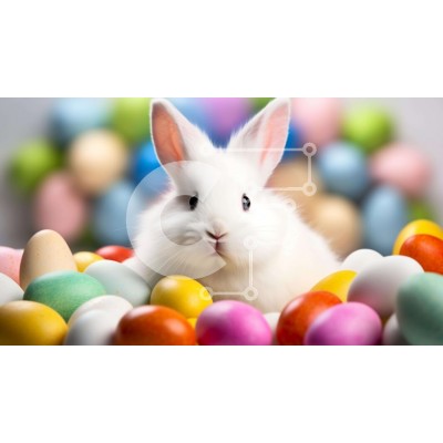 Υπάρχει δυνατότητα προσωποποίησης με δική σας φωτογραφία και προσαρμογής διαστάσεων κατόπιν παραγγελίας. Το συγεκεριμενο Puzzle 10x10 cm – 25 κομμ παρουσιαζει Η εικόνα παρουσιάζει ένα λευκό κουνελάκι που περιβάλλεται από μια σειρά από πολύχρωμα αυγά του Πάσχα. Το κουνέλι κάθεται στη μέση και κοιτάζει την κάμερα, μεταφέροντας μια αίσθηση περιέργειας προς τα αυγά. Ένα μοναδικό Puzzle 10x10 cm – 25