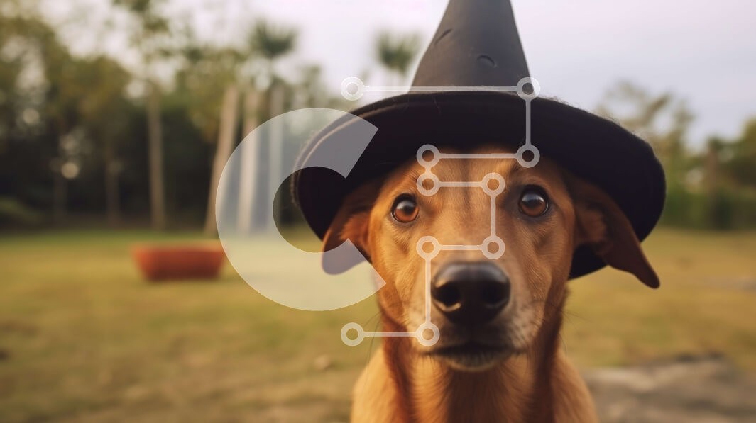 Υπάρχει δυνατότητα προσωποποίησης με δική σας φωτογραφία και προσαρμογής διαστάσεων κατόπιν παραγγελίας. Το συγεκεριμενο Puzzle 10x10 cm – 25 κομμ παρουσιαζει Αυτή η εικόνα παρουσιάζει έναν καφέ σκύλο που φορά ένα ανάποδο καπέλο μάγισσας. Ο σκύλος στέκεται στο γρασίδι και κοιτάζει κατευθείαν την κάμερα με το κεφάλι του γερμένο στο πλάι. Φαίνεται να προσδοκά κάτι συναρπαστικό. Ένα μοναδικό Puzzle