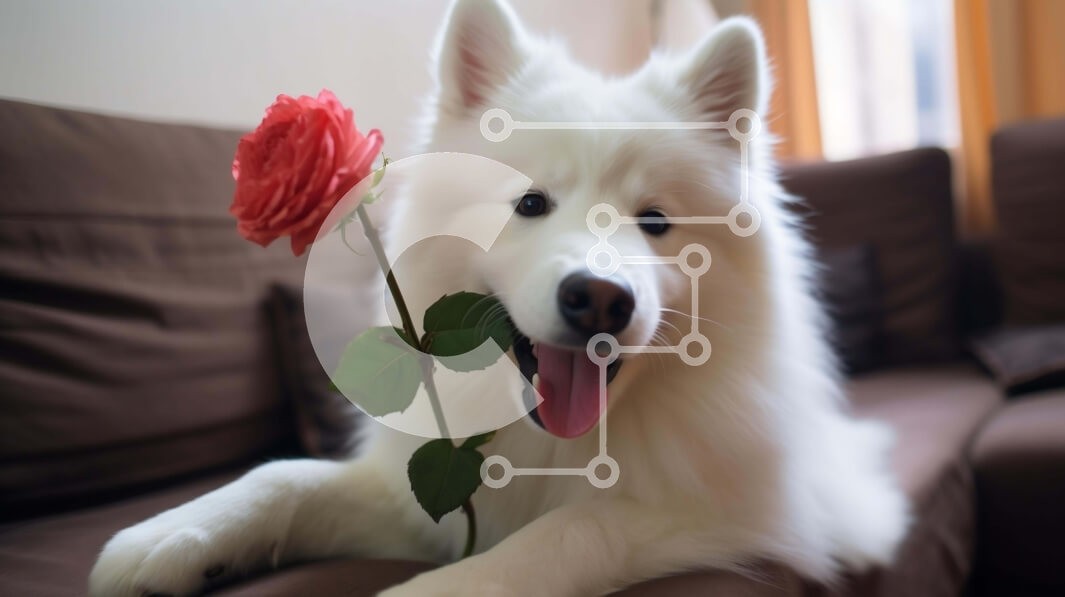 Υπάρχει δυνατότητα προσωποποίησης με δική σας φωτογραφία και προσαρμογής διαστάσεων κατόπιν παραγγελίας. Το συγεκεριμενο Puzzle 10x10 cm – 25 κομμ παρουσιαζει Αυτή η εικόνα παρουσιάζει έναν αξιολάτρευτο λευκό σκύλο να κάθεται σε έναν καφέ καναπέ ενώ κρατά ένα μπουκέτο τριαντάφυλλα στο στόμα του. Ο σκύλος φαίνεται ικανοποιημένος και φαίνεται να απολαμβάνει την παρουσία των λουλουδιών. Ένα μοναδικό
