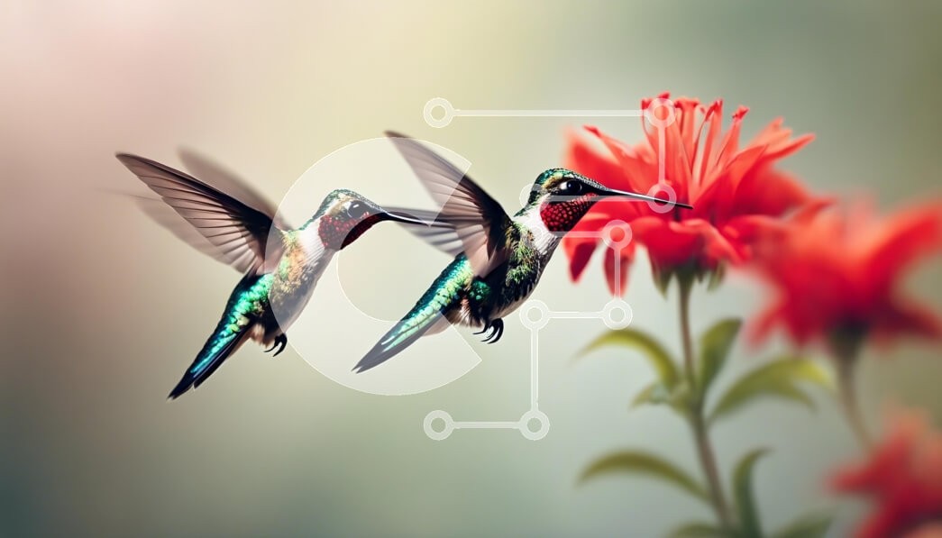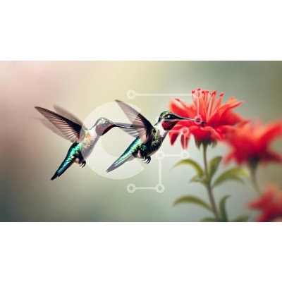 Υπάρχει δυνατότητα προσωποποίησης με δική σας φωτογραφία και προσαρμογής διαστάσεων κατόπιν παραγγελίας. Το συγεκεριμενο Puzzle 10x10 cm – 25 κομμ παρουσιαζει Η εικόνα παρουσιάζει δύο ζωντανά κολίβρια που αιωρούνται κοντά σε ένα έντονο κόκκινο λουλούδι. Τα ιριδίζοντα φτερά τους αστράφτουν στο απαλό φως, προβάλλοντας αποχρώσεις του πράσινου και μια νότα κόκκινου στο λαιμό τους. Το φόντο είναι απαλά