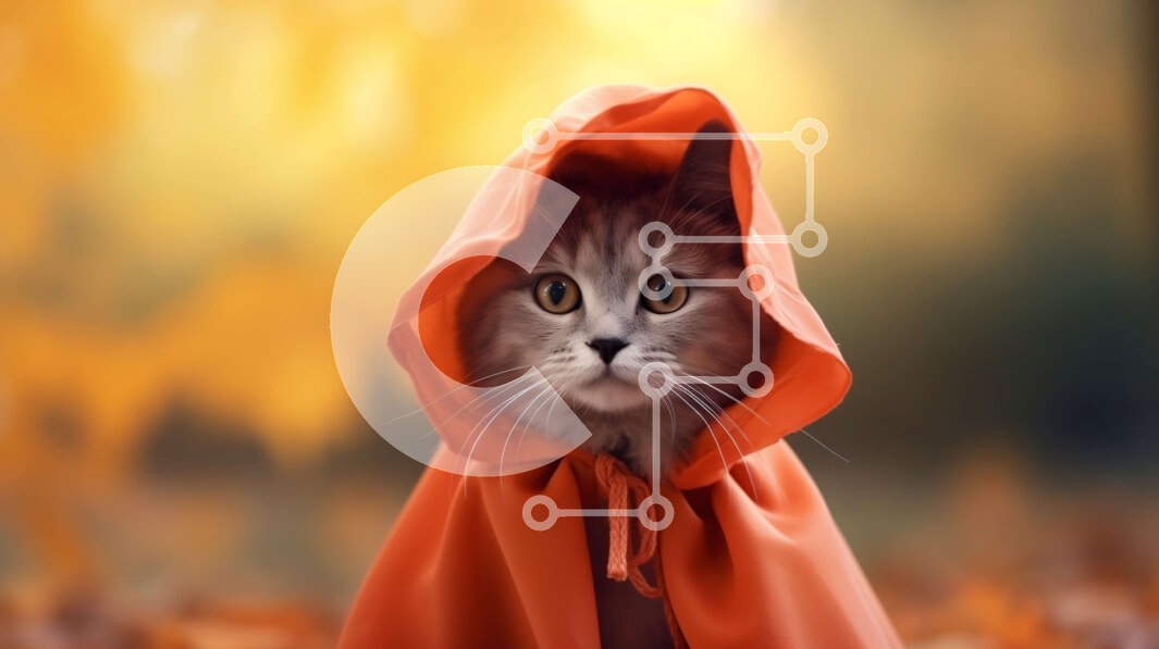 Υπάρχει δυνατότητα προσωποποίησης με δική σας φωτογραφία και προσαρμογής διαστάσεων κατόπιν παραγγελίας. Το συγεκεριμενο Puzzle 10x10 cm – 25 κομμ παρουσιαζει Αυτή η εικόνα παρουσιάζει μια γάτα που φορά έναν πορτοκαλί μανδύα με κουκούλα και κάθεται σε ένα κρεβάτι με φθινοπωρινά φύλλα. Τα ορθάνοιχτα μάτια της γάτας αντανακλούν την περιέργειά της και ίσως έναν υπαινιγμό φόβου, προσθέτοντας στην ίντρ